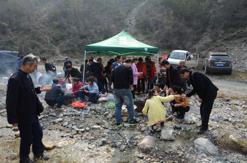 大約1個小時的時間,大家紛紛從山上下來,到達野炊地點開始共同制******心大餐。同志們熱情高漲,分工明確,一幅其樂融融的景象,不一會兒,愛心大餐便已出鍋,大家品嘗著自己的勞動成果,感覺格外香甜。