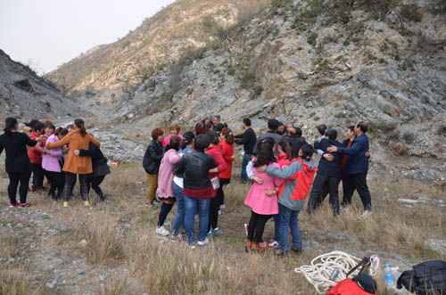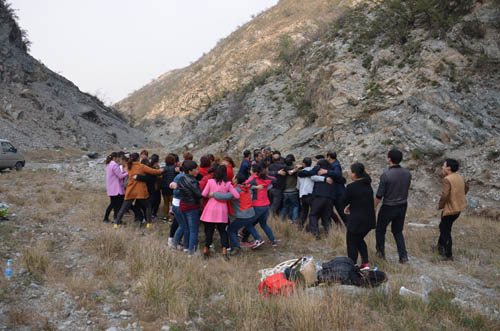 到達目的地,負責人講解了活動細則及注意事項后,大家就開始爬山,年輕的員工早已摩拳擦掌,躍躍欲試。在旗手的帶領(lǐng)下,大家爭先恐后的向山頂進發(fā)。