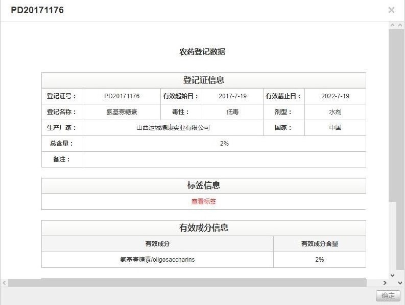 ①水劑外觀為均相透明液體,有微量懸浮物。氨基寡糖素是利用微生物發(fā)酵技術(shù)從富含甲殼素的蟹、蝦等產(chǎn)品的廢棄物中分離得到的,是一種具有抗病作用的******劑,******譜廣,對(duì)多種******、******、病毒引起的病害均有效。