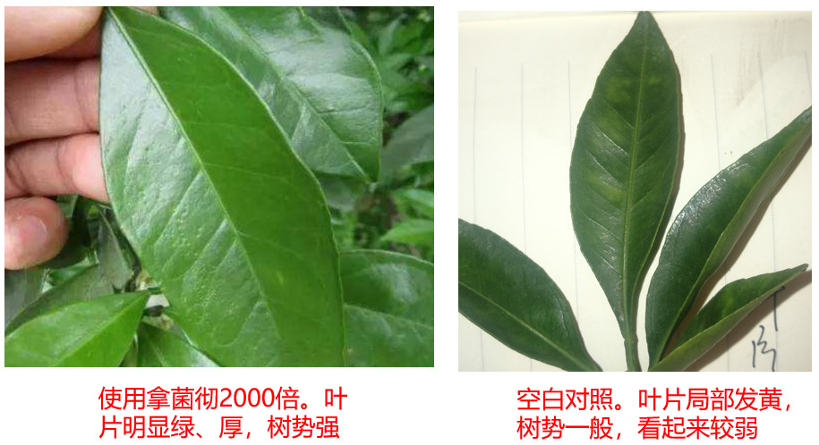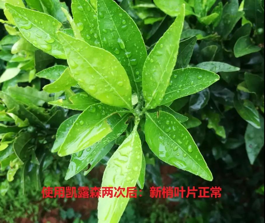 綜合以上實(shí)踐應(yīng)用和試驗(yàn)得出結(jié)論:全剩余期使用2-3次凱露森葉片、果面不會(huì)受到脂點(diǎn)黃斑病和砂皮病的侵染,***終達(dá)到葉片濃綠、果面靚麗的效果,而且能夠提高樹(shù)勢(shì)。