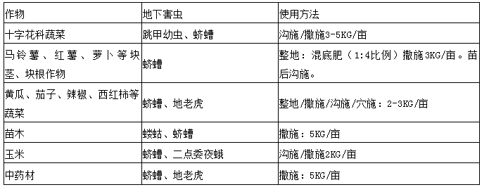 防治對(duì)象:大蒜根蛆  畝用量:5公斤